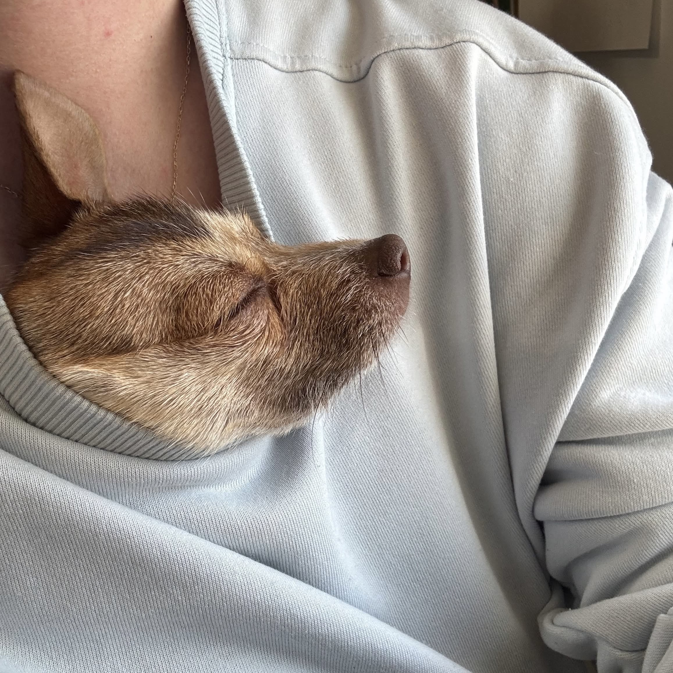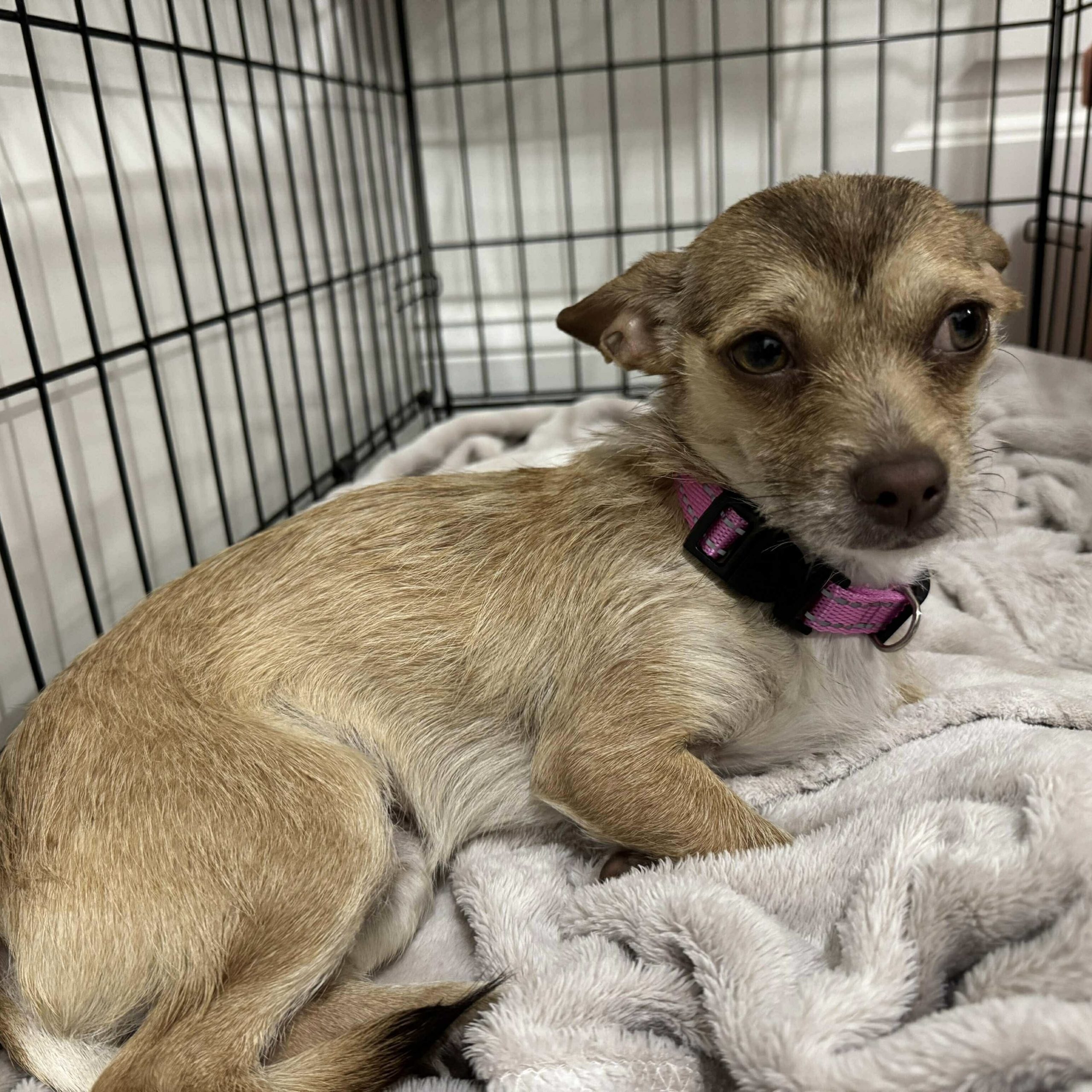 Our best guess is that Capri is a Chihuahua mixed breed. Chihuahuas are known for their big personalities in tiny bodies, often forming incredibly strong bonds with their favorite people. They’re affectionate, expressive, and loyal companions who love to snuggle just as much as they enjoy exploring the world at their own pace. Despite their small size, they’re confident, alert, and full of charm.