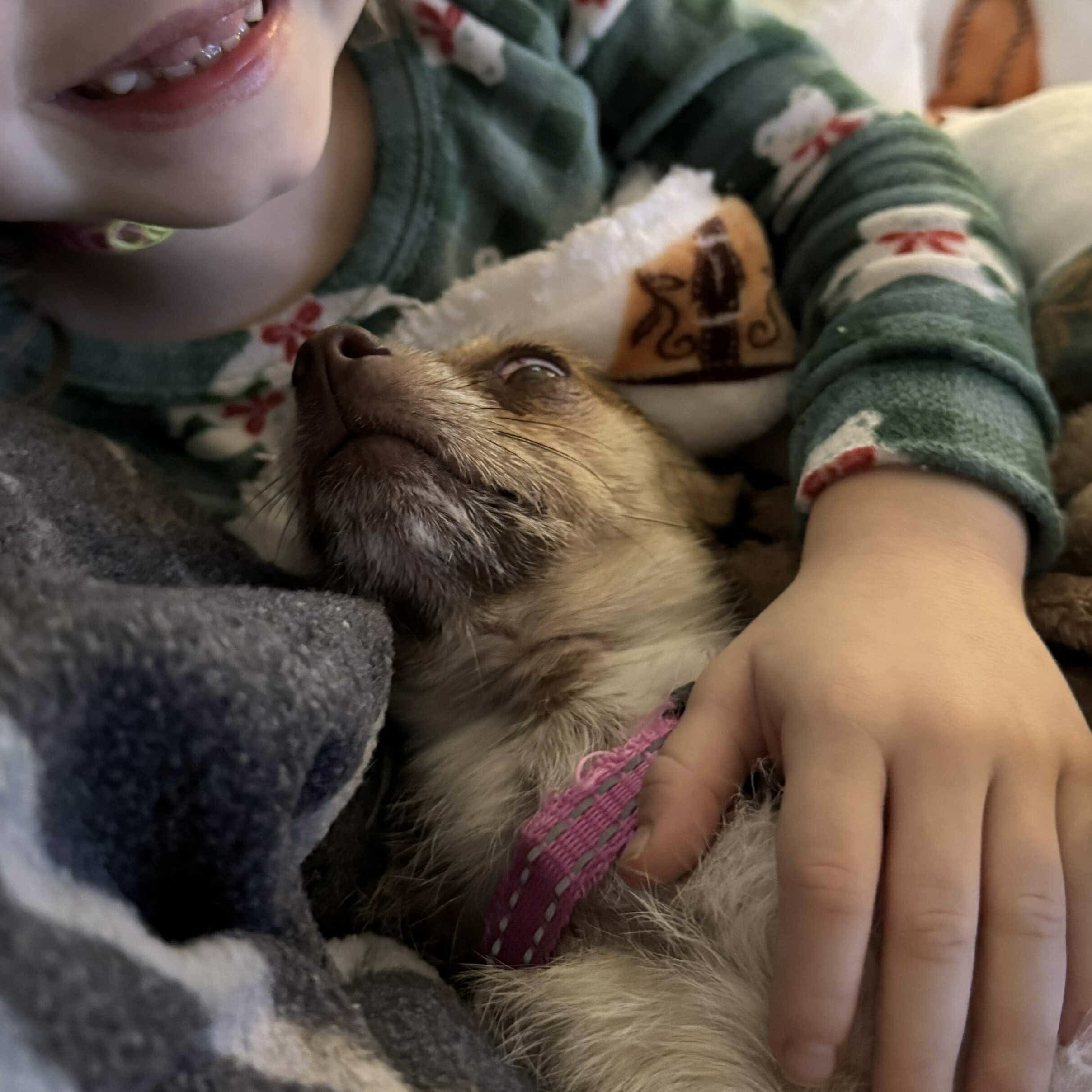 Her favorite pastime, though, is being carried, cuddled, and doted on — her foster family lovingly calls her Capri Sun because she’s just that sweet!
