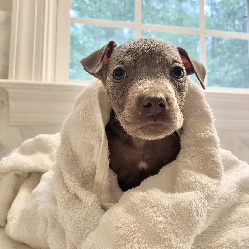 Meet Hubble — a 2-month-old, 4 lb Pit Mix puppy with a gentle heart and a quiet charm that’s truly out of this world.