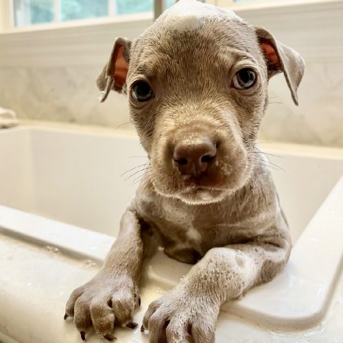 Hubble is the soft-spoken sweetheart of his litter. He lets his siblings take the lead, but once he feels safe, he’s all tail wags and cuddles. He’s a little shy at first, but give him a moment and you’ll see just how friendly and affectionate he really is. Hubble is medium energy, enjoys his solo time, and is slowly building confidence with every new experience.