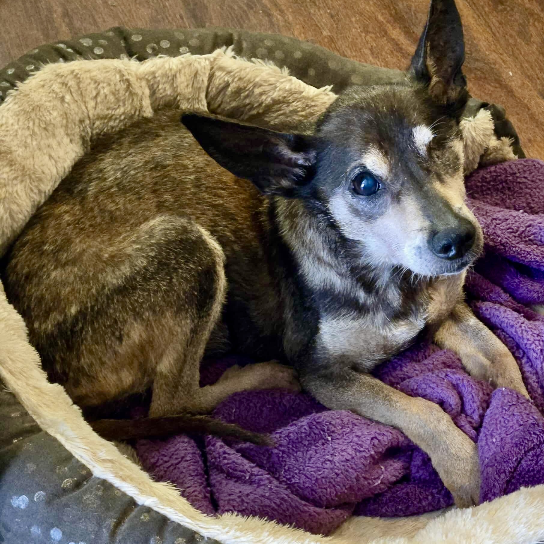 Meet Leela — a 12-year-old, 14 lb Mini Pinscher with the sweetest stance and a heart full of love!