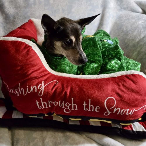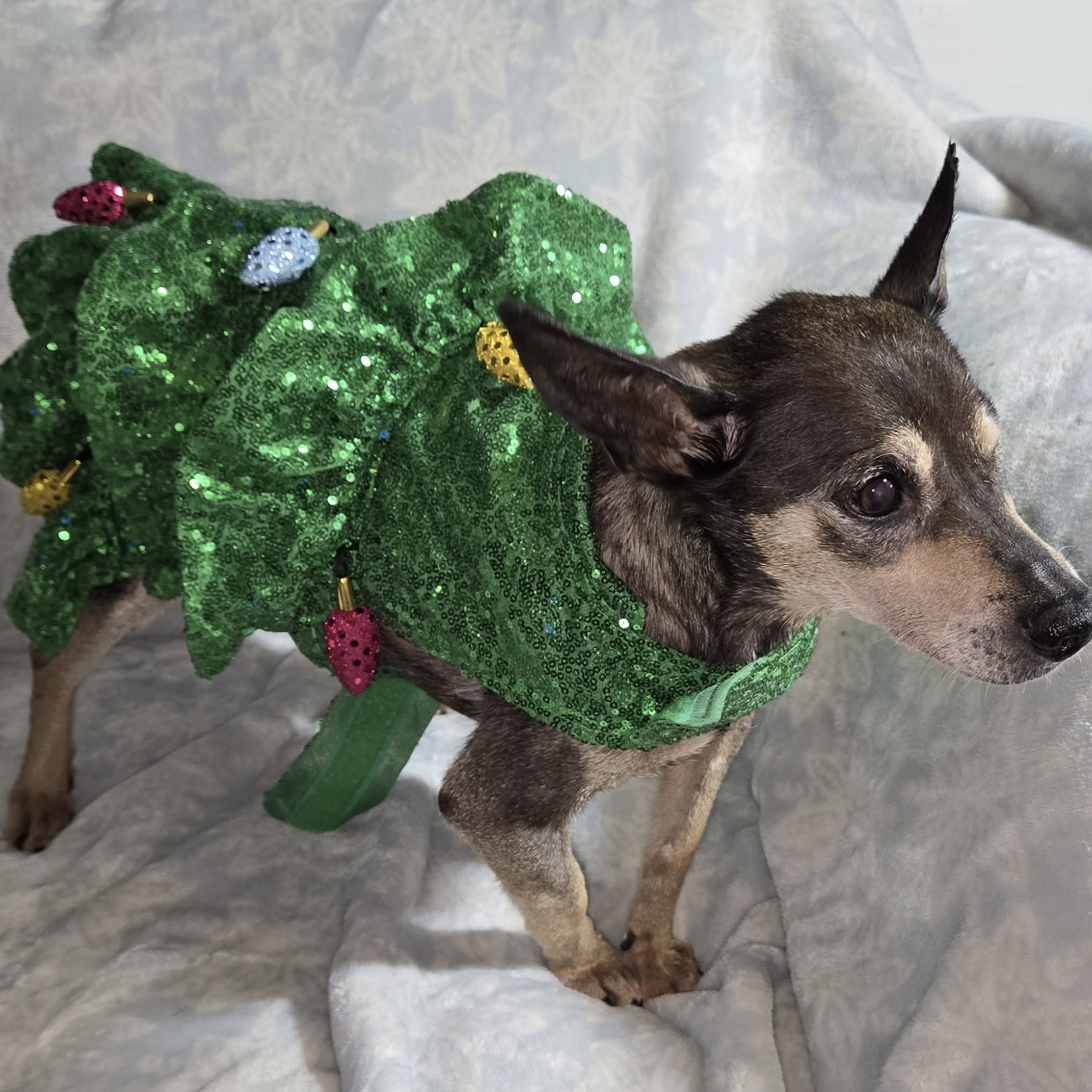 Our best guess is that Leela is a Mini Pinscher mix. The Miniature Pinscher, often called the “Min Pin,” is a small but fearless breed known for its lively personality and bold spirit. Despite their toy size, they carry themselves with confidence and pride, earning nicknames like “King of the Toys.” Min Pins are intelligent, independent, and quick learners, but they can also be strong-willed, so consistent training and secure environments are important. With their athletic build and outgoing temperament, they thrive in homes that provide regular exercise, mental stimulation, and plenty of companionship. Min Pins typically weigh 8–10 pounds, stand about 10–12.5 inches tall, and live 12–16 years.