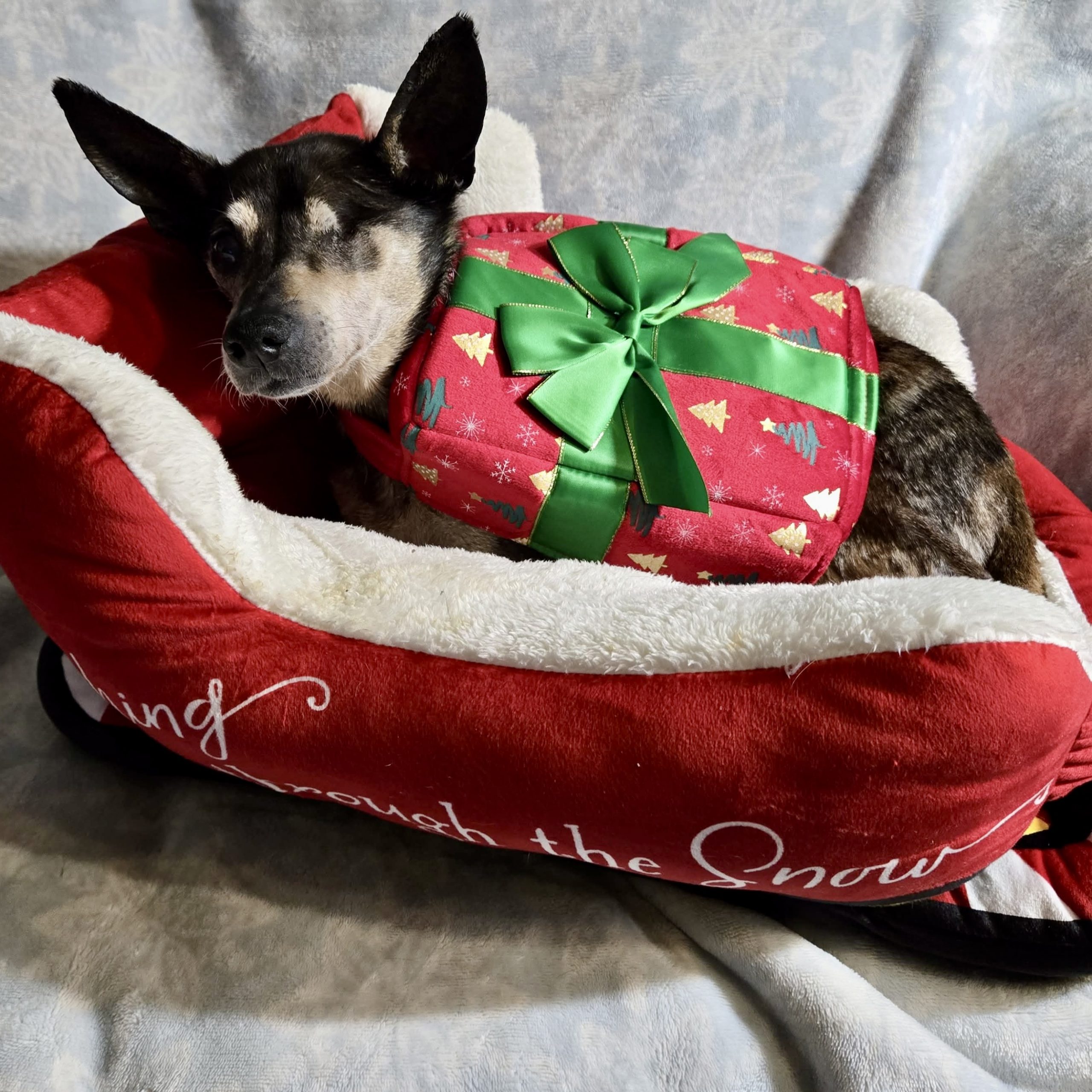 Leela may be a senior, but she’s still got plenty of charm to share. With her stiff little walk (likely from arthritis) and her one-eyed grin, she’s proof that beauty comes in all forms. She’s potty trained, crate trained, and trustworthy outside of her crate, making her a low-maintenance companion (think “Couch Potato” vibes). Leela is friendly with everyone she meets, though she’d do best in a home without small children due to her age and preference for a calmer environment.