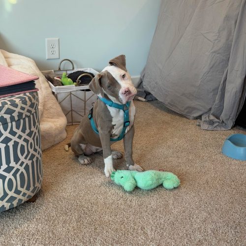 Maui is everything you’d expect from a happy puppy — playful, curious, affectionate, and full of life. She can be a little shy at first, but she warms up quickly and will happily shadow her favorite person around the house. She doesn’t yet realize her puppy strength, so a home with older, respectful children would be ideal.