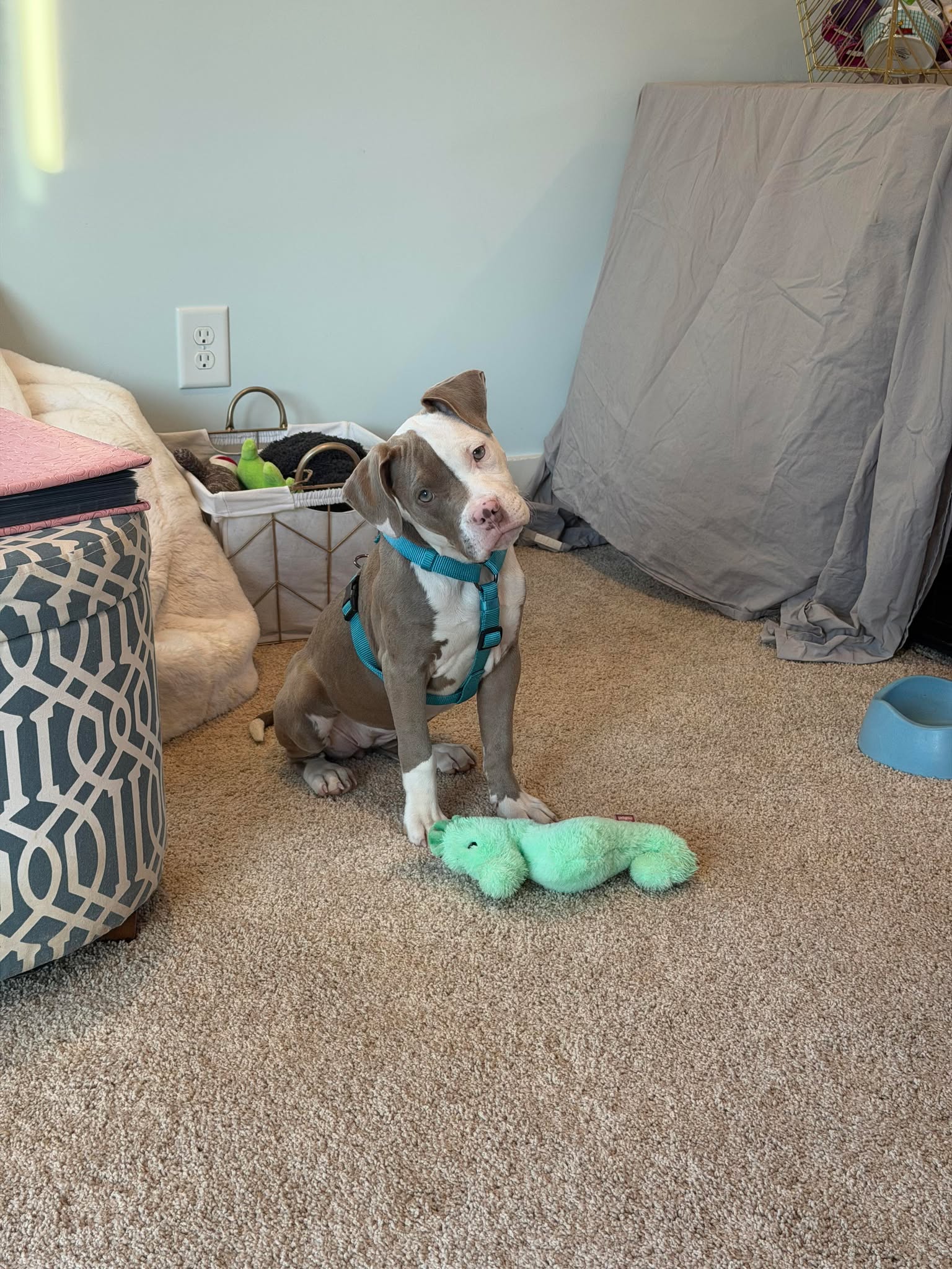 Crate Trained: Not yet — does well in a play pen and should be penned when left alone