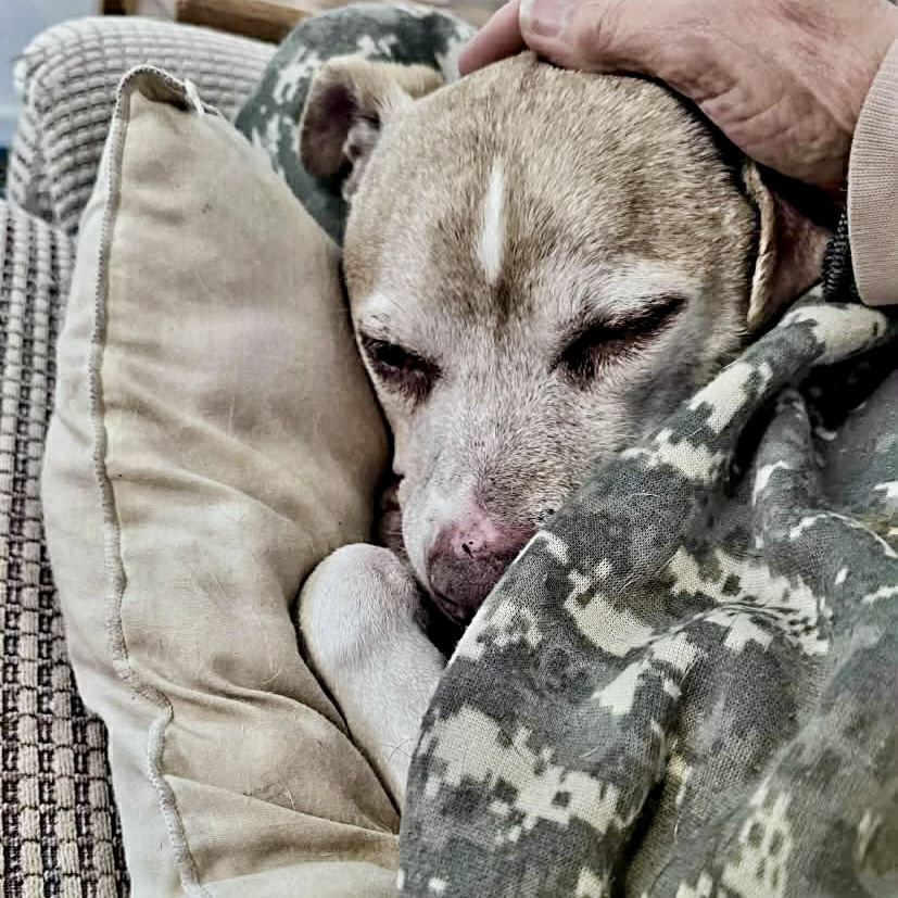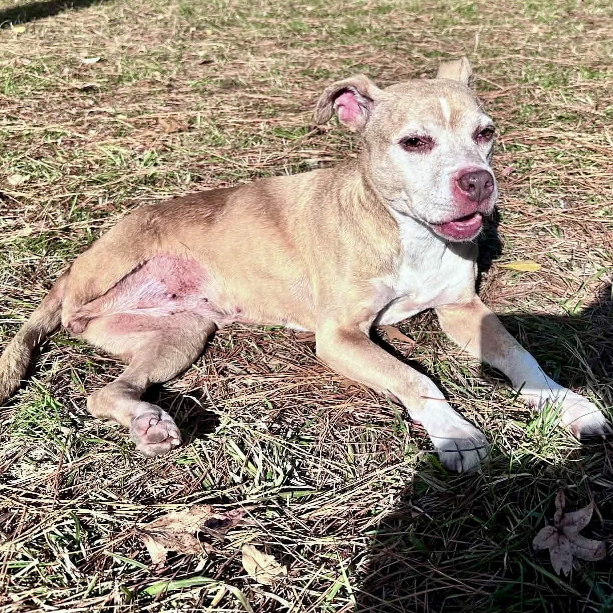 This gentle, three‑legged angel is as quiet as a mouse, sweet as can be, and content with the simple joys of life: a soft couch, a cozy dog bed, and a family to love. Her tripod status doesn’t slow her down one bit — she navigates stairs with ease, enjoys light play, and moves around confidently!