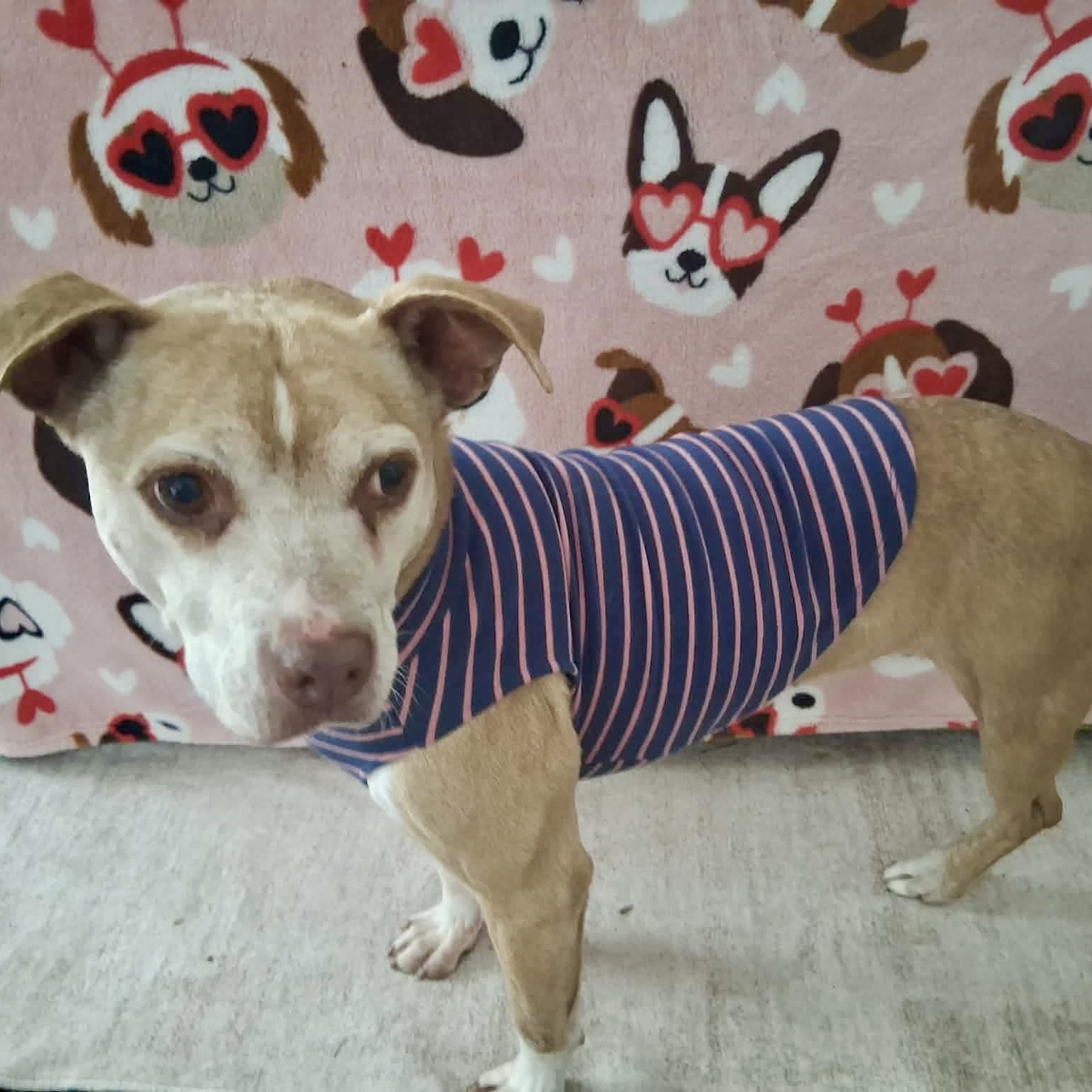 Our best guess is that Mayvis is an American Pitbull Terrier and Beagle mixed breed. Pitbull–Beagle mixes often blend the loving loyalty of a Pitbull with the curious, cheerful nature of a Beagle, creating a companion who is affectionate, people‑oriented, and delightfully expressive. They tend to be social, gentle, and eager to be part of family life, with a balanced energy level that enjoys both playtime and relaxed cuddles.