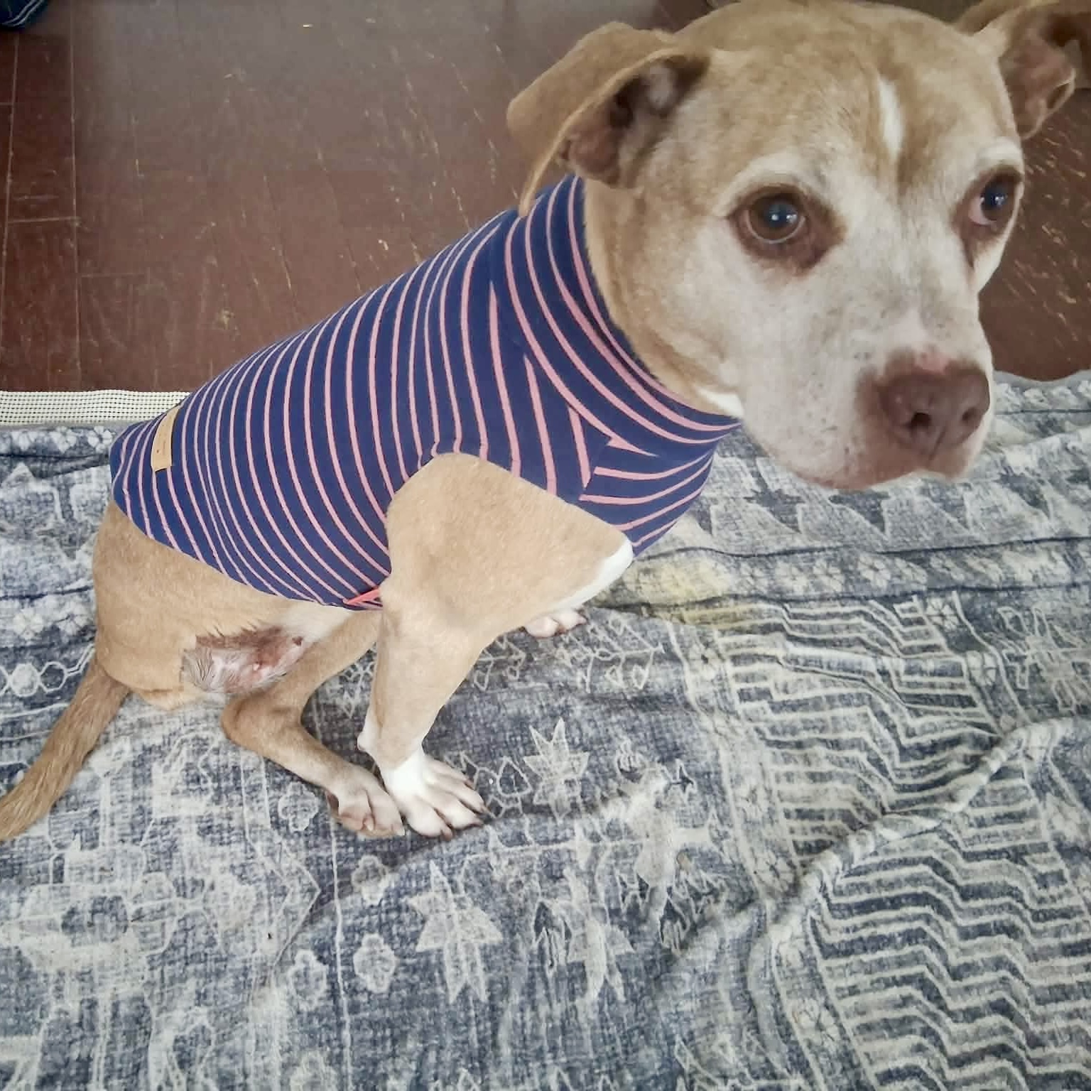This gentle, three‑legged angel is as quiet as a mouse, sweet as can be, and content with the simple joys of life: a soft couch, a cozy dog bed, and a family to love. Her tripod status doesn’t slow her down one bit — she navigates stairs with ease, enjoys light play, and moves around confidently!