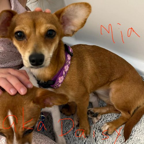 With a blend of Chihuahua, Dachshund, and Jack Russell, Mia combines loyalty, intelligence, and playful spirit. These breeds are known for bonding closely with their people while enjoying interactive play and daily activity. With continued structure and guidance, this mix makes a loving and adaptable companion.