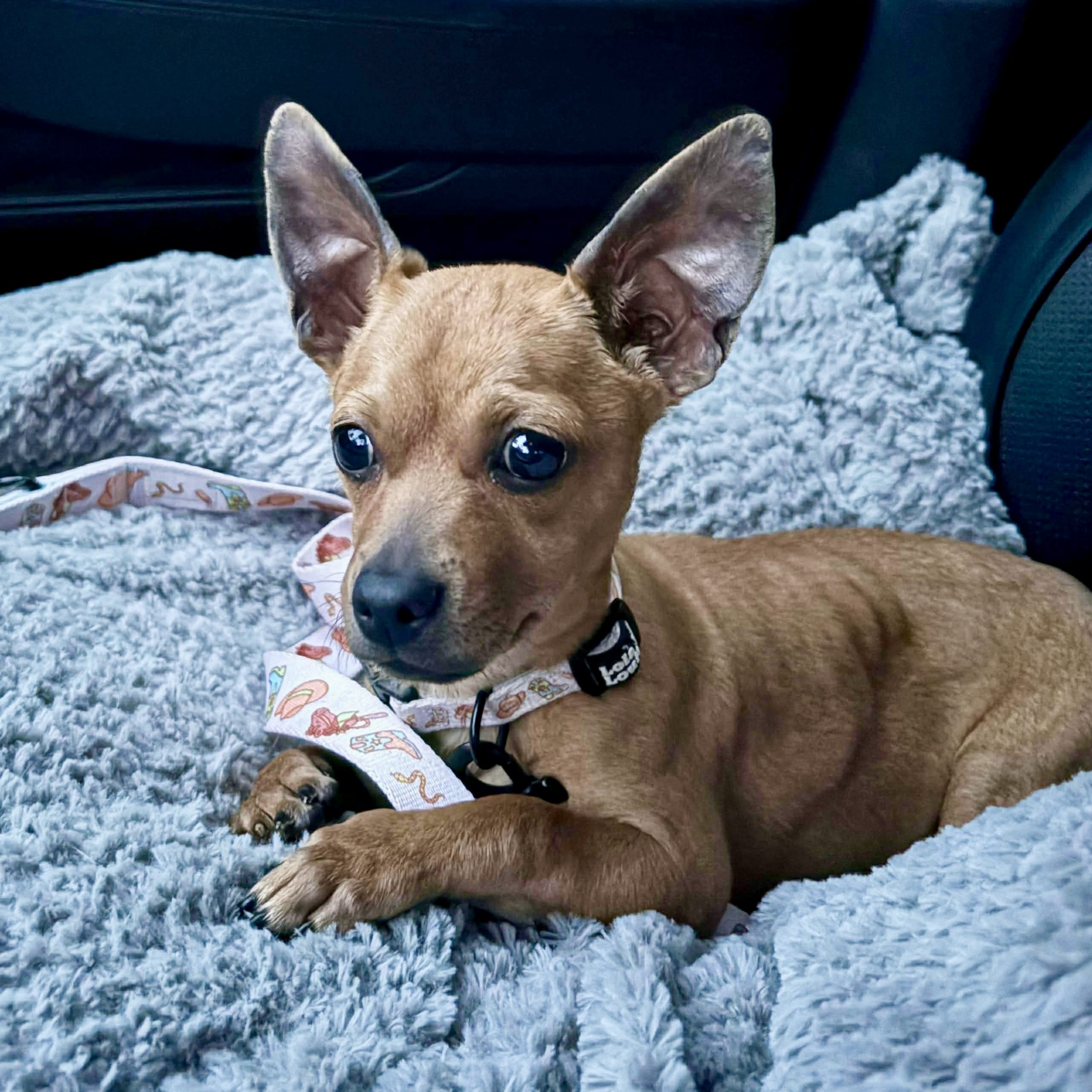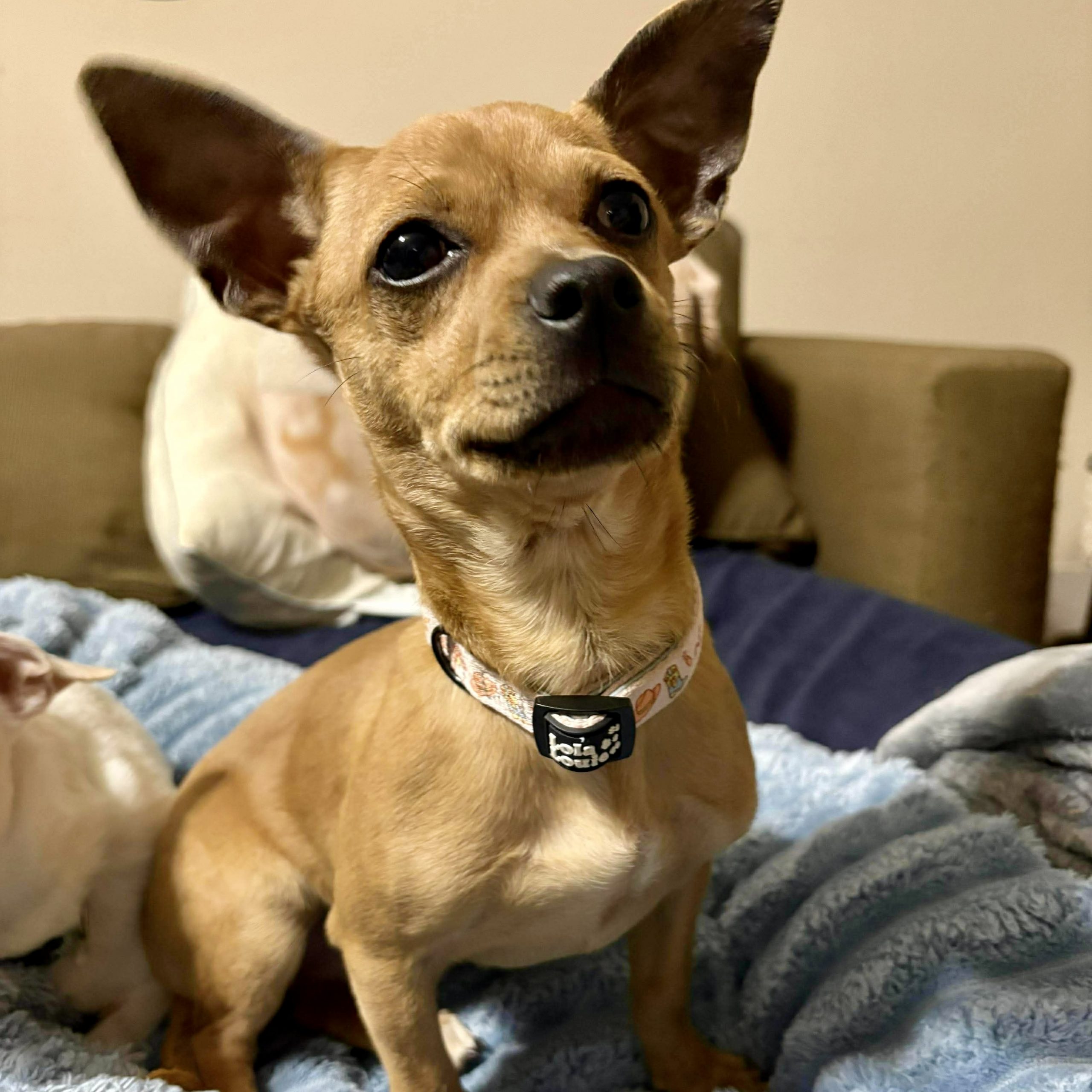 Our best guess is that Miso is a Chihuahua mixed breed Chihuahuas are known for their big personalities in tiny bodies, often forming strong bonds with their favorite people. They’re alert, expressive, and full of charm, with a playful streak that makes them endlessly entertaining. Despite their small size, they’re confident little companions who love being involved in whatever their humans are doing.