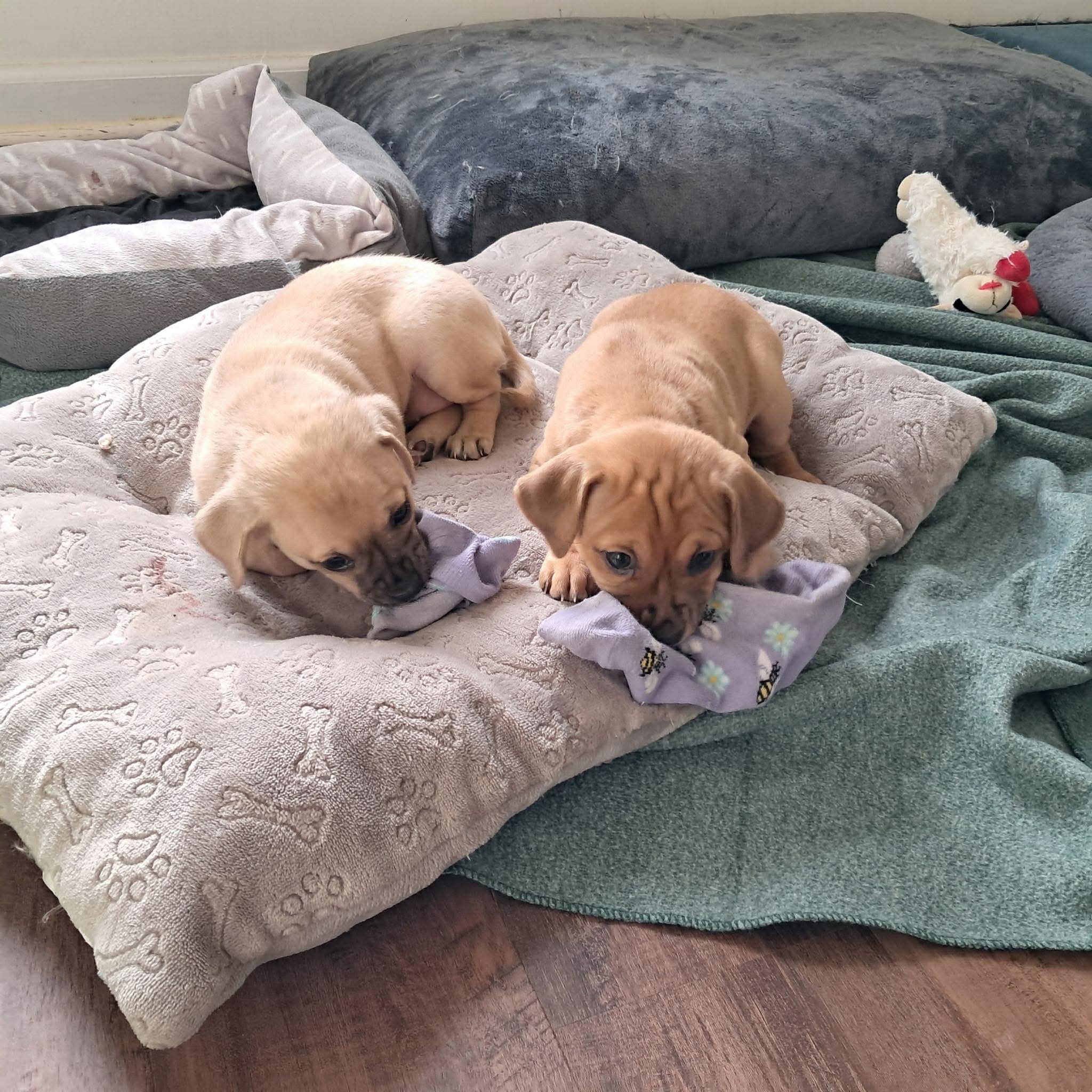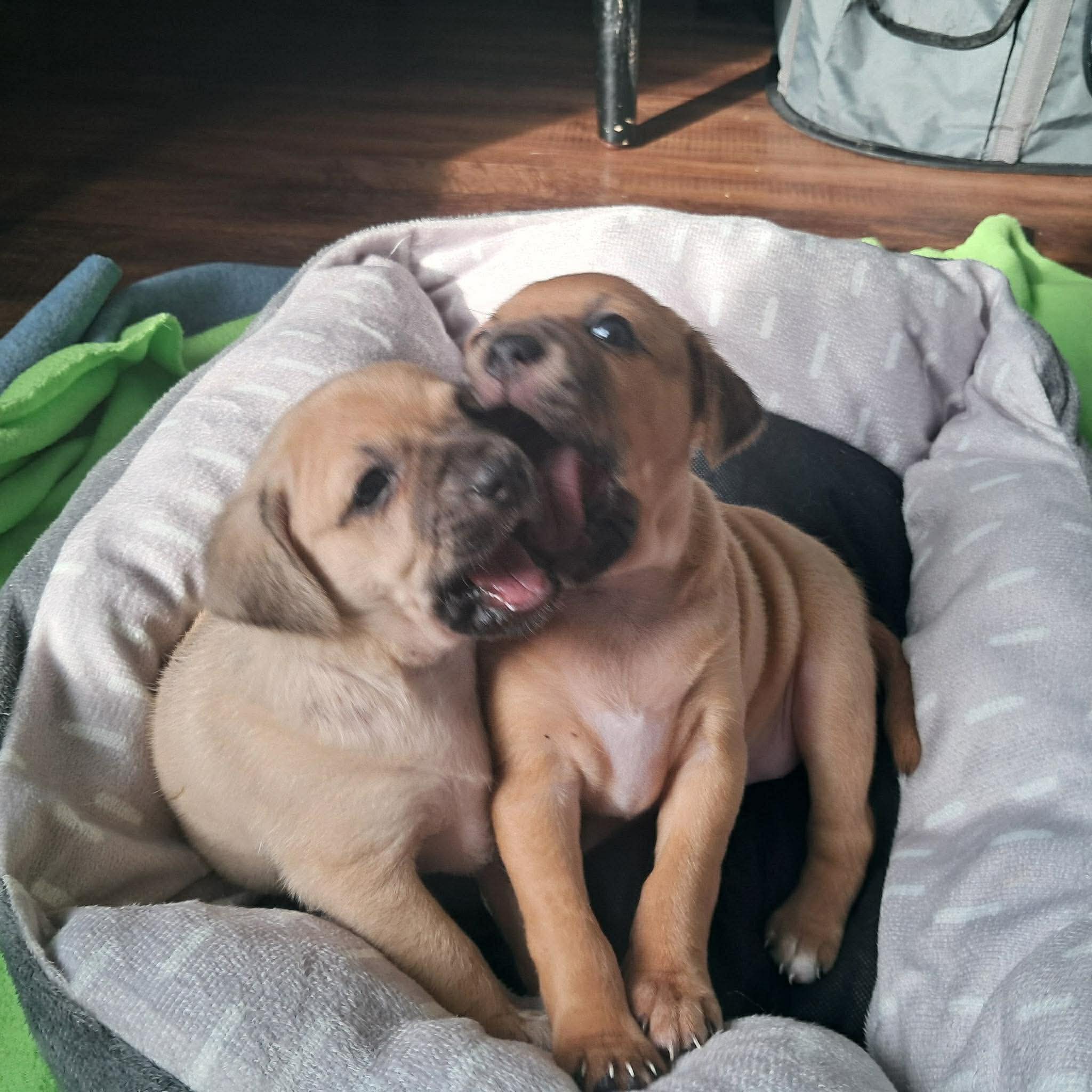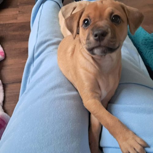 PBJ is the snuggliest little pup, happiest when she’s being held close and showered with love. Like any playful puppy, she plays hard and naps hard, bringing joy and laughter to her foster home. She has a silly streak too—sometimes stealing socks—but it’s all part of her adorable puppy charm and something she’ll likely grow out of. PBJ especially loves tummy rubs and will flop over to show her belly, asking for affection in the cutest way possible.