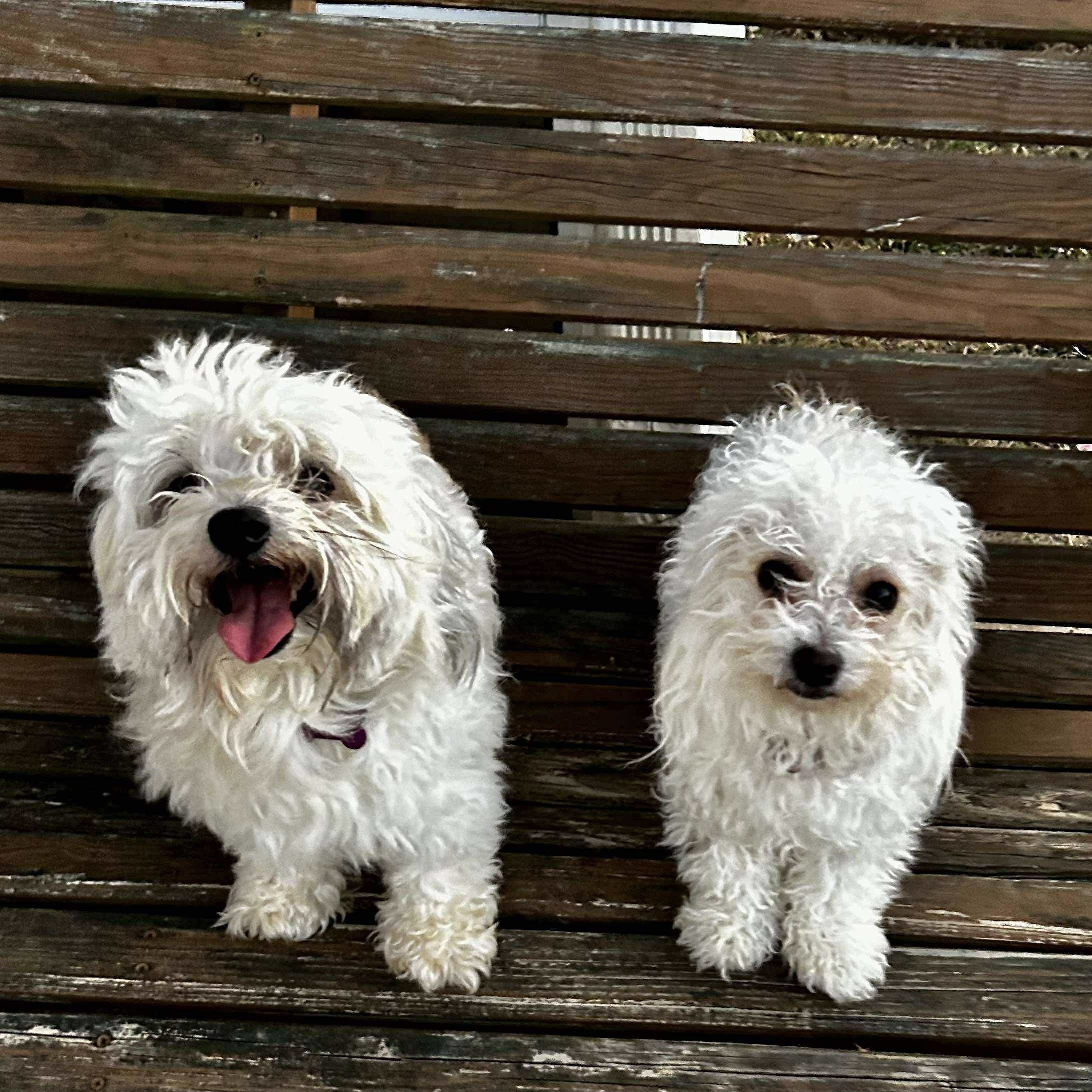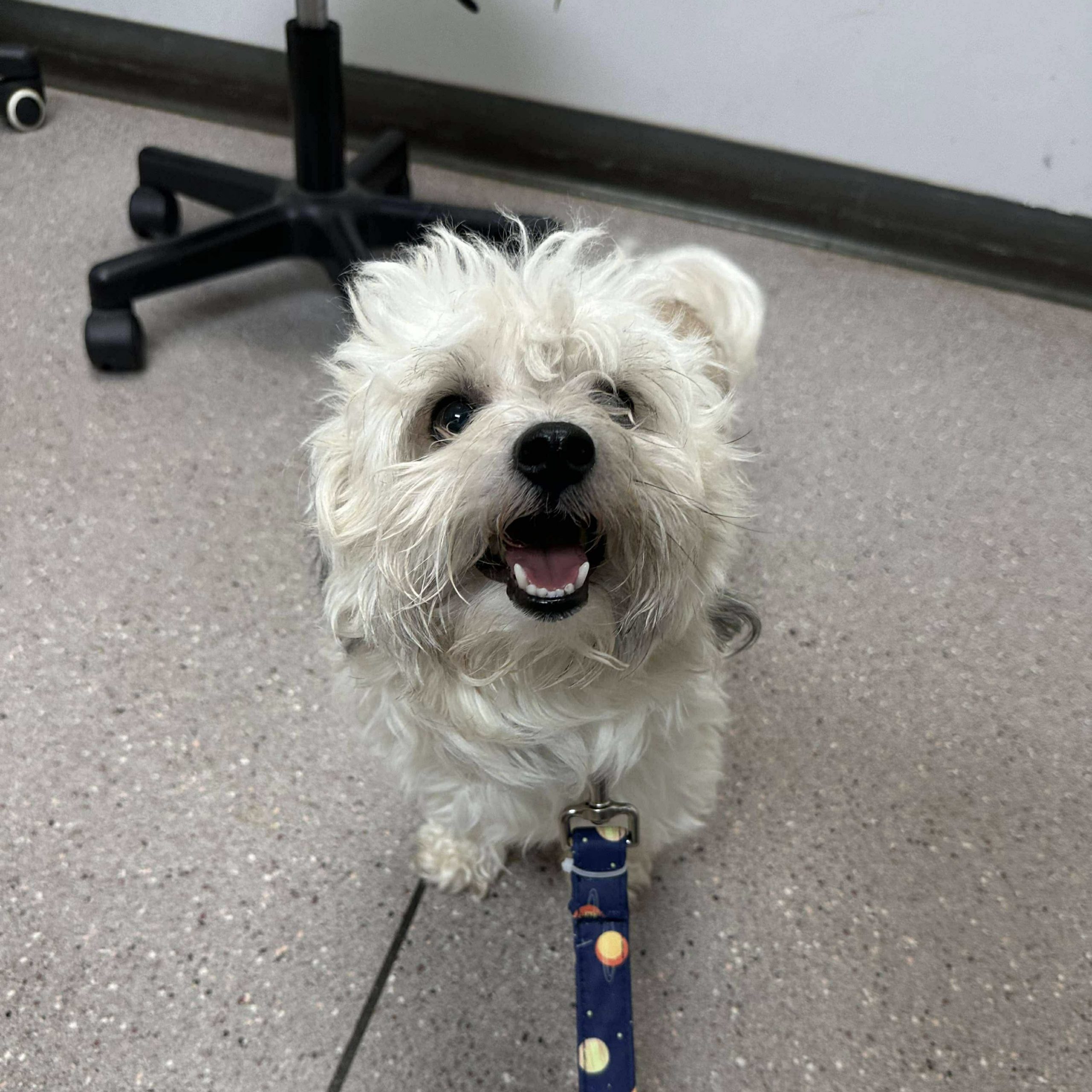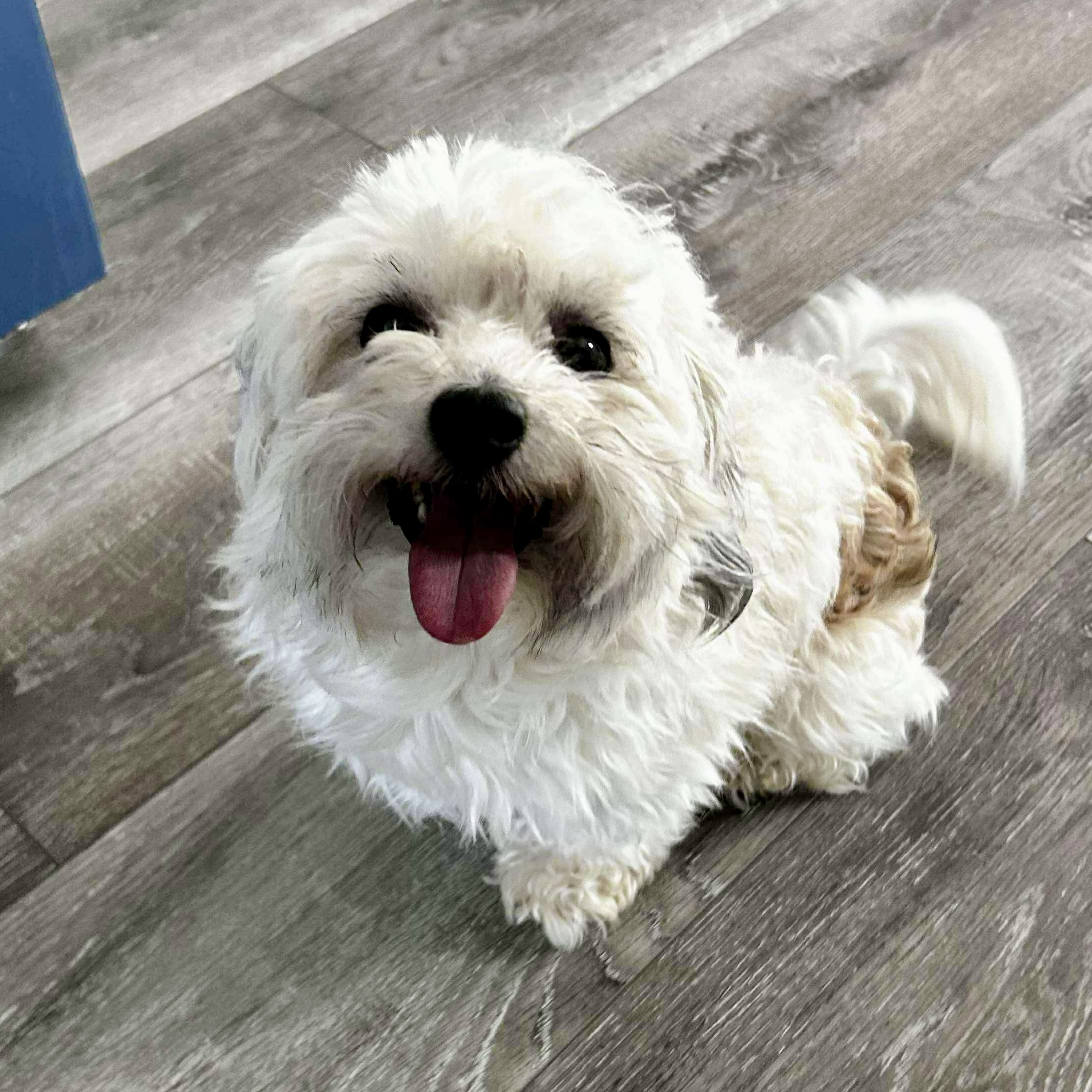 Our best guess is that Pinto is a Maltese/Poodle mix. The Maltese Poodle mix, commonly known as the Maltipoo, is a small, affectionate hybrid that blends the gentle charm of the Maltese with the intelligence and low-shedding coat of the Poodle. Typically weighing between 5–20 pounds, Maltipoos are ideal for apartment living and thrive in homes where they can be close to their people. They are known for being friendly, playful, and easy to train. With their soft, wavy or curly coats and sweet disposition, Maltipoos make wonderful companions for families, seniors, and singles alike.