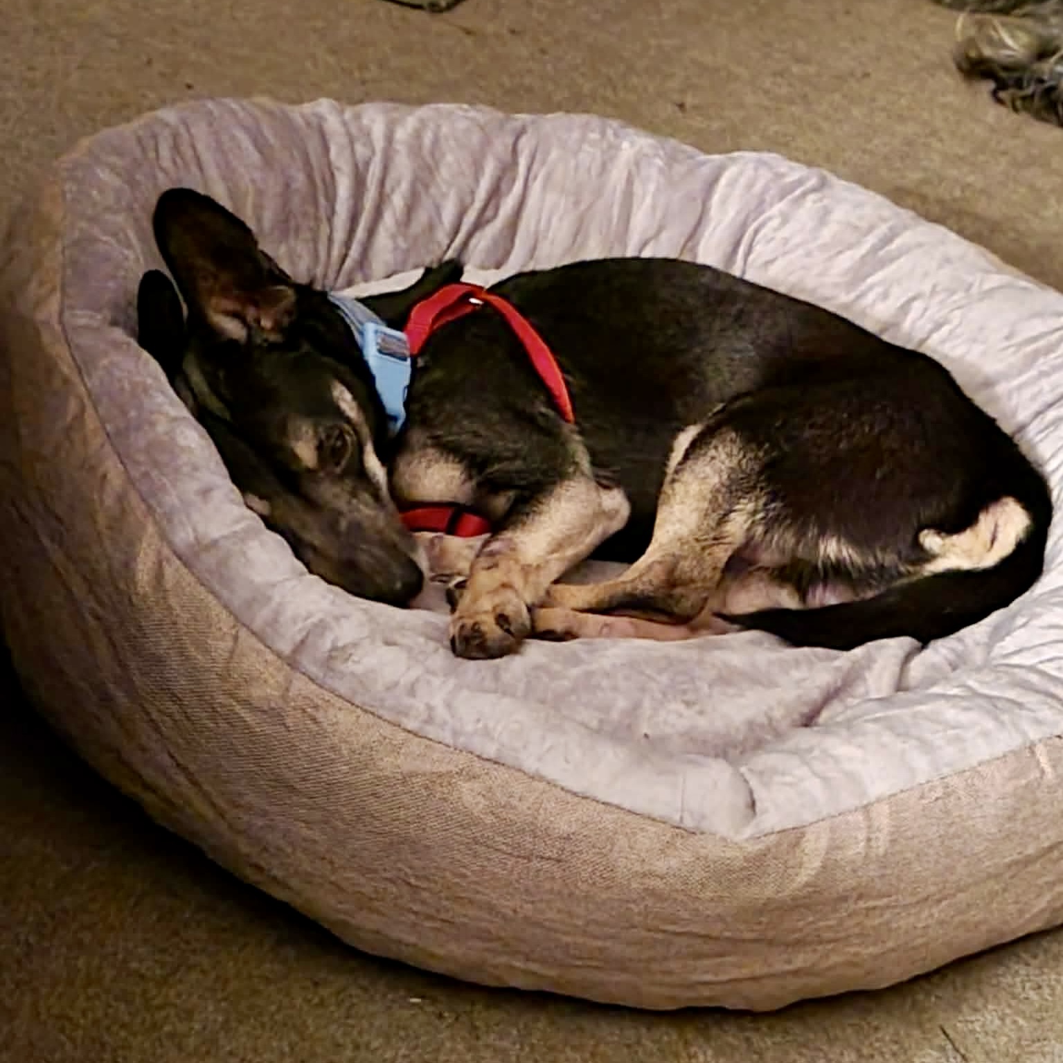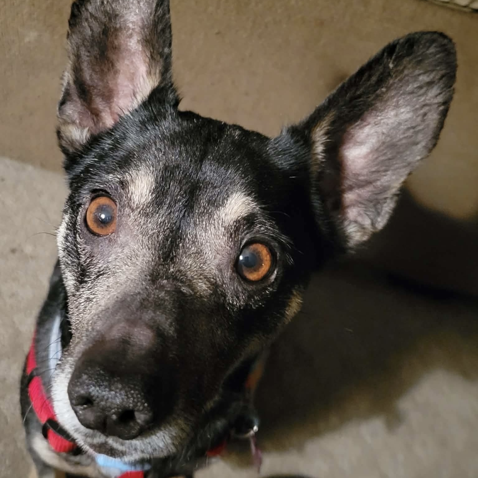 Rexford is doing wonderfully with leash training and enjoys the occasional stroll around the block. He gets along well with other dogs after slow, proper introductions — he may bark at first, but once he feels safe, he settles in beautifully. He hasn’t met cats or kids yet, but can be tested on meet and greets. He forms strong bonds with his people and loves being near them as much as possible (a.k.a. ultimate snuggle buddy!)