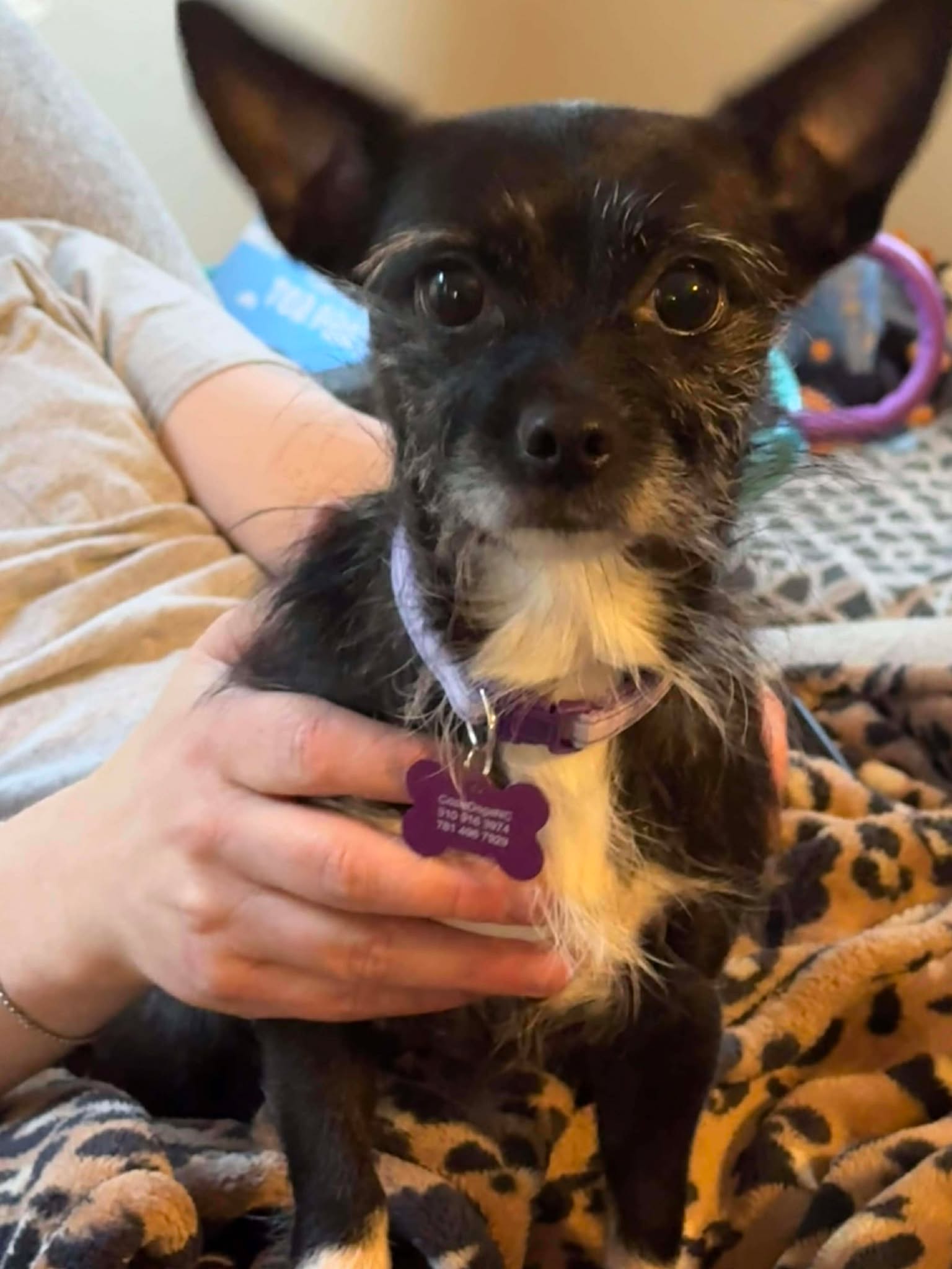 Chihuahua mixes are known for forming strong bonds with their people and thriving as close companions. They are often loyal, affectionate, and happiest when curled up beside someone they trust. Sheeba fits this description perfectly — tiny in size but overflowing with love once she feels secure.