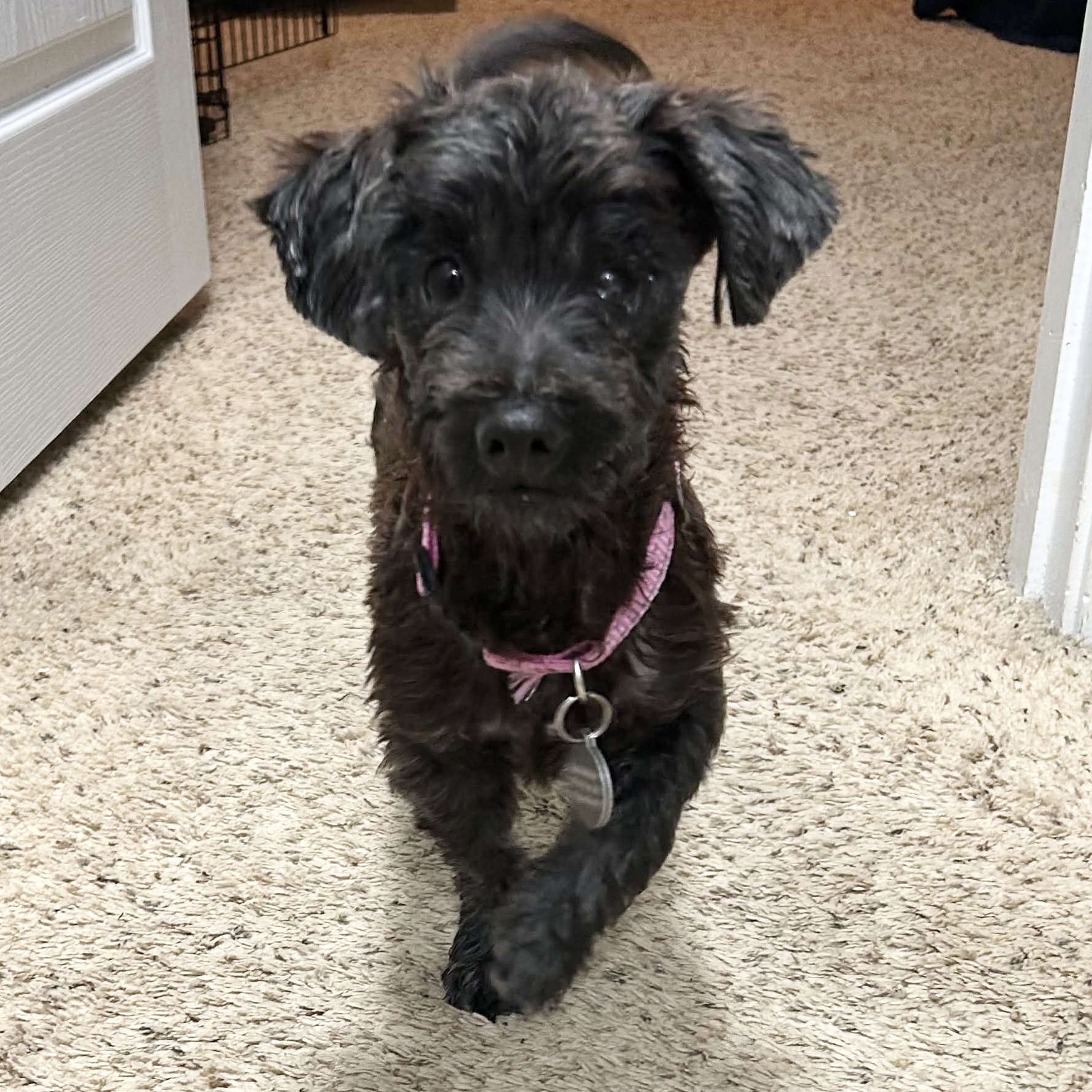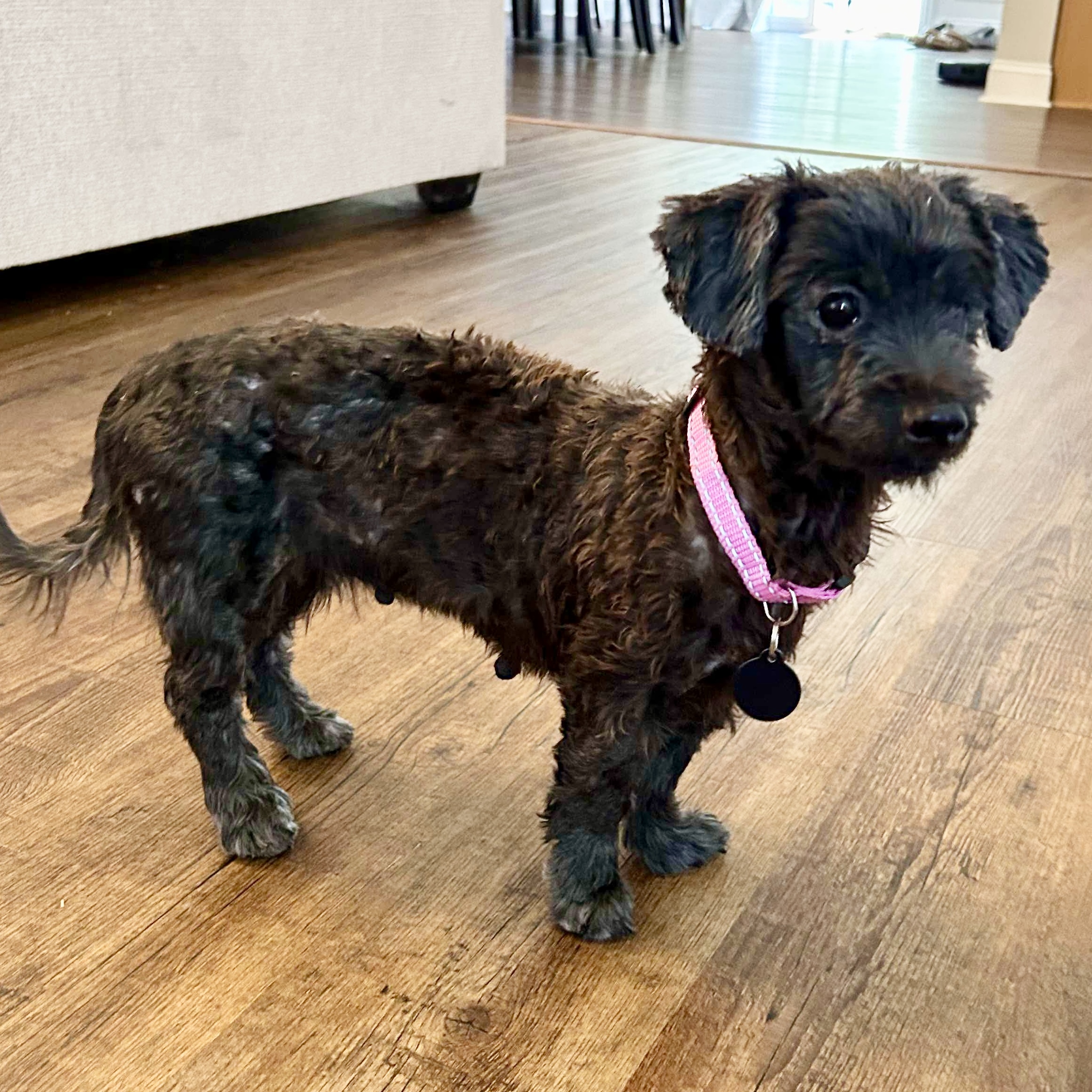 • Potty training in progress, especially dislikes going out in the rain