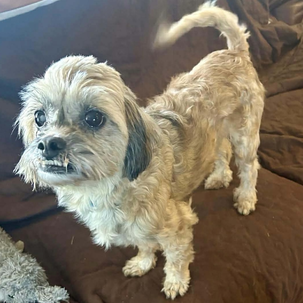 Our best guess is that Widget is Shih Tzu and Yorkie mix. The Shih Tzu/Yorkie mix, often called a Shorkie, is a small but spirited companion that blends the affectionate, gentle nature of the Shih Tzu with the bold, lively personality of the Yorkshire Terrier. These dogs are typically loyal, playful, and thrive on being close to their people. Shorkies can be a bit stubborn, but their intelligence and eagerness to please make them trainable with patience and consistency. With their compact size, loving temperament, and adaptable energy levels, they make wonderful pets for families, singles, or seniors looking for a devoted lap dog with a touch of spunk.