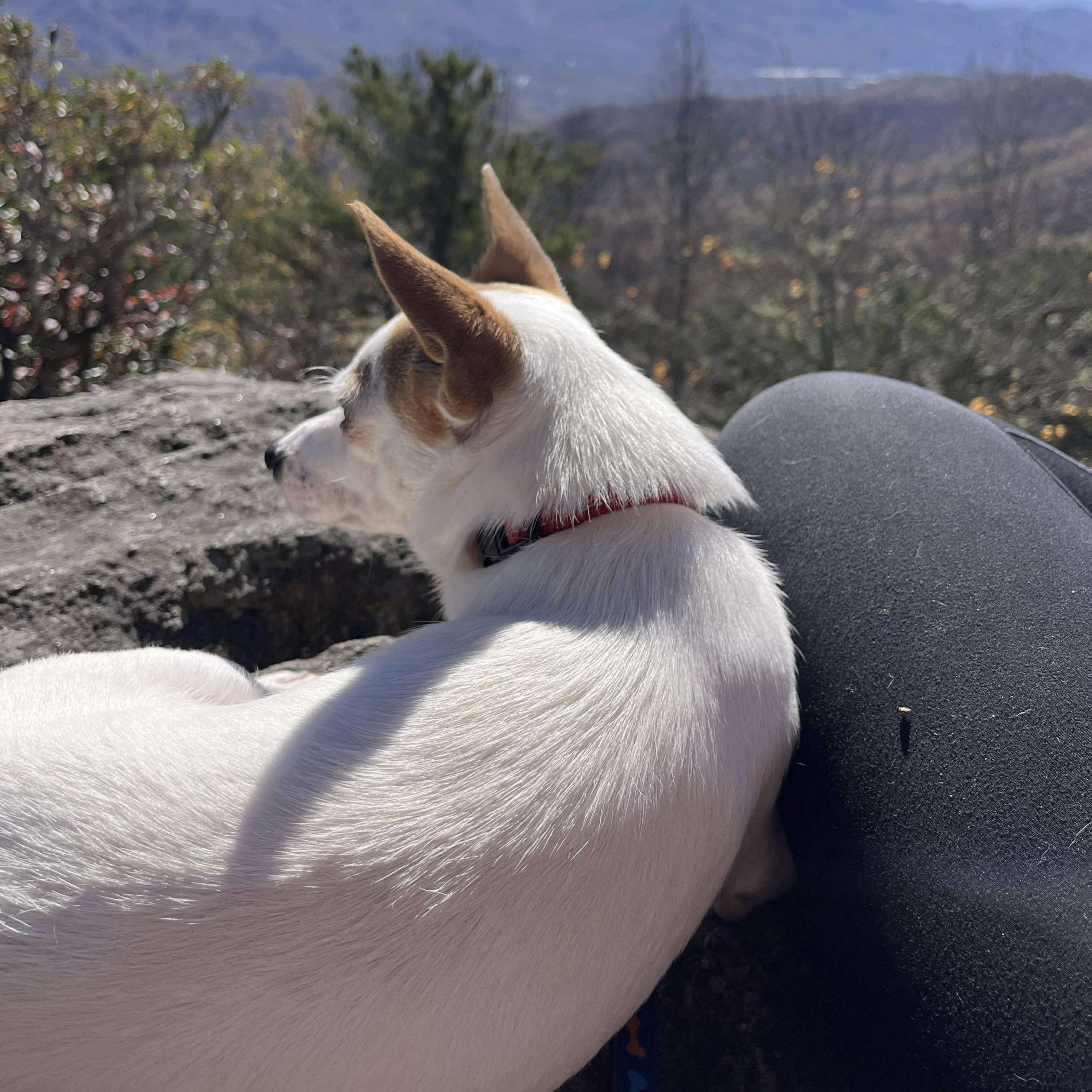 • Obsessed with walks, hikes, and leash time (he must have a family who loves walks as much as he does!)